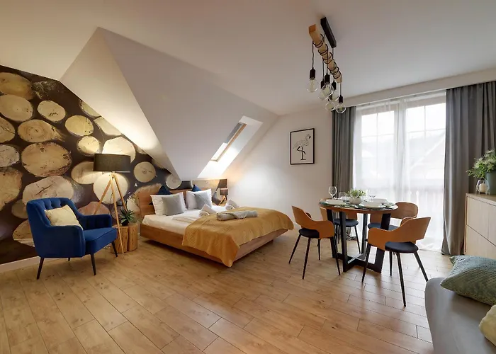 カルパッチでの休暇を楽しむには,スポ-ツ アンド ツ-リズム ミュ-ジアムから徒歩で12分で,ワイルド・フォ-ルス(ジキ・ヴォドスパッド)から2.5km離れた所の寝室1室のTrevilles Apartamenty Zielony Azyl カルパッチがあります.
